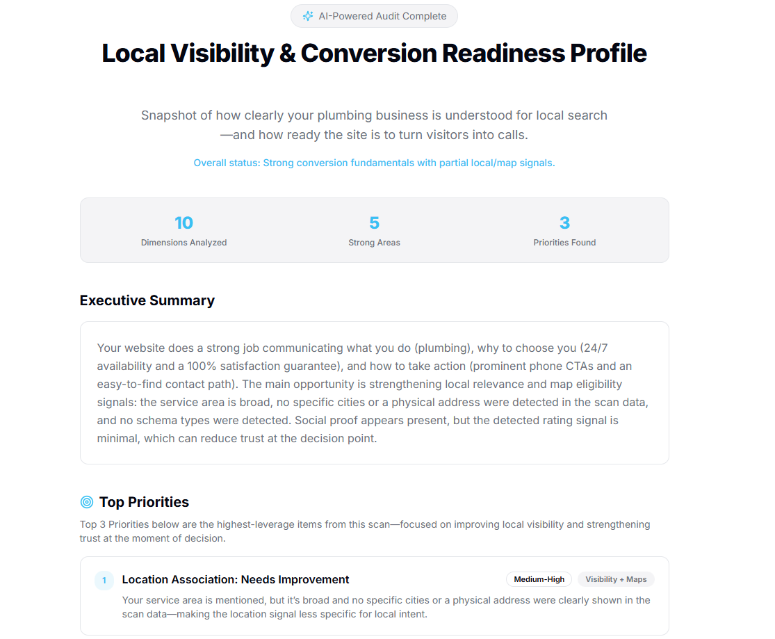 “I had no idea my Google Business Profile wasn’t even showing up in searches. This scan showed me exactly what was broken and how to fix it. Within 2 weeks, I started getting calls again.”