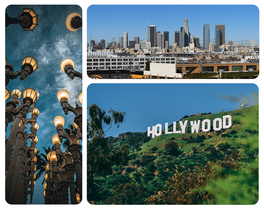 City pages and service pages targeting neighborhoods: Downtown LA, Hollywood, Venice, Santa Monica, Beverly Hills, Long Beach, and Pasadena.