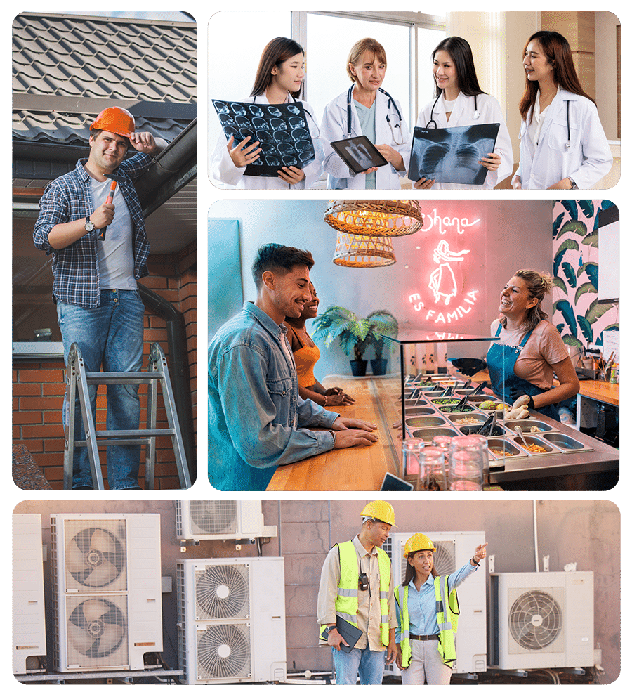- Contractors and trades like plumbing, HVAC, roofing, and electrical